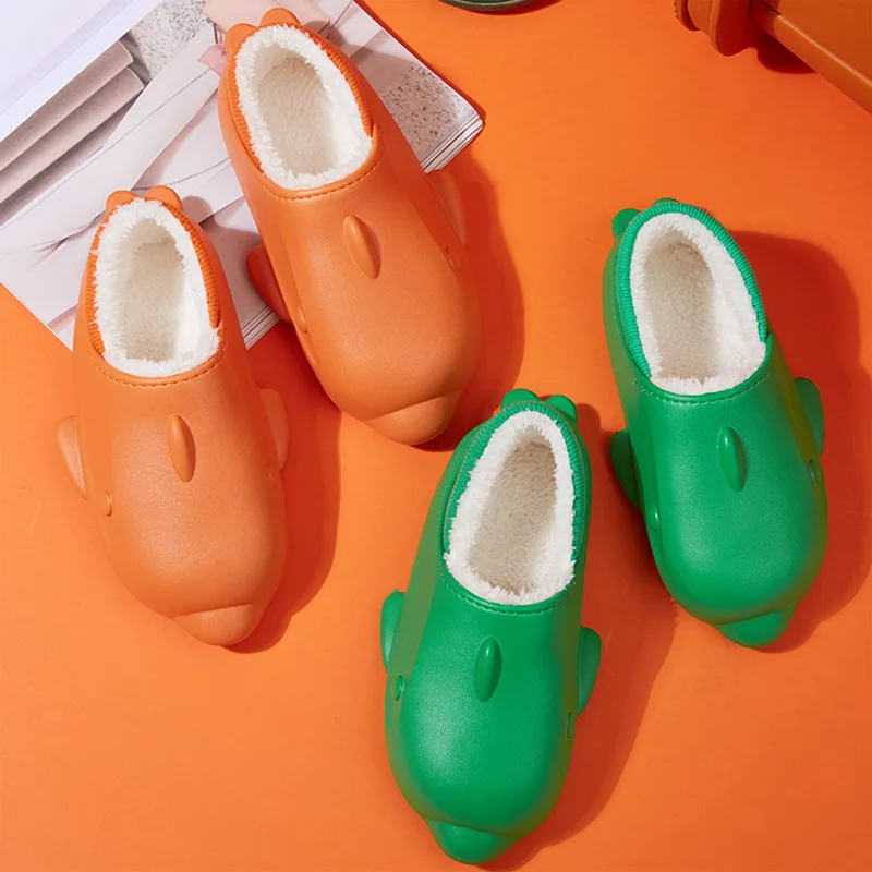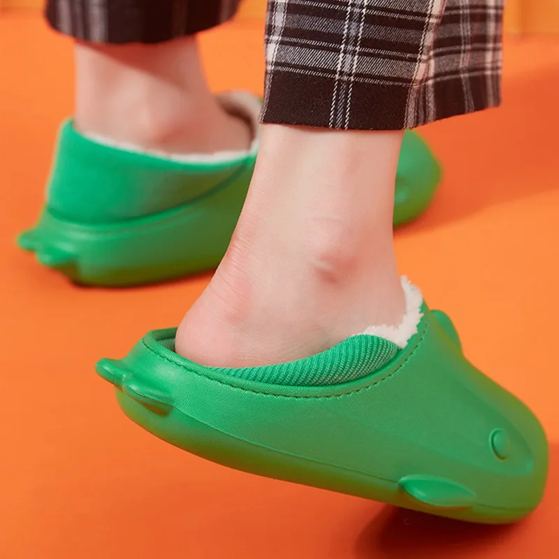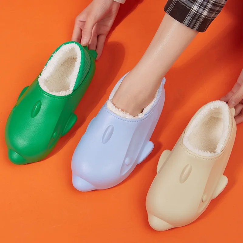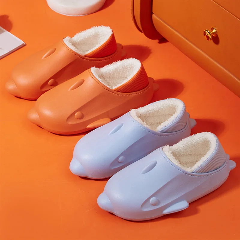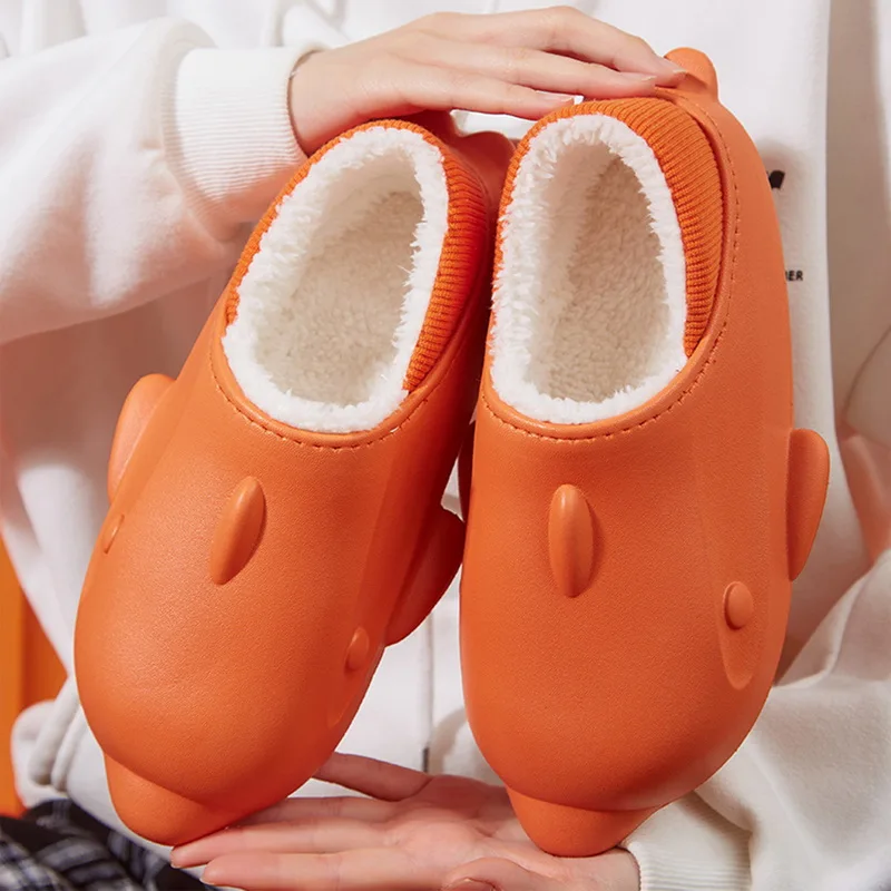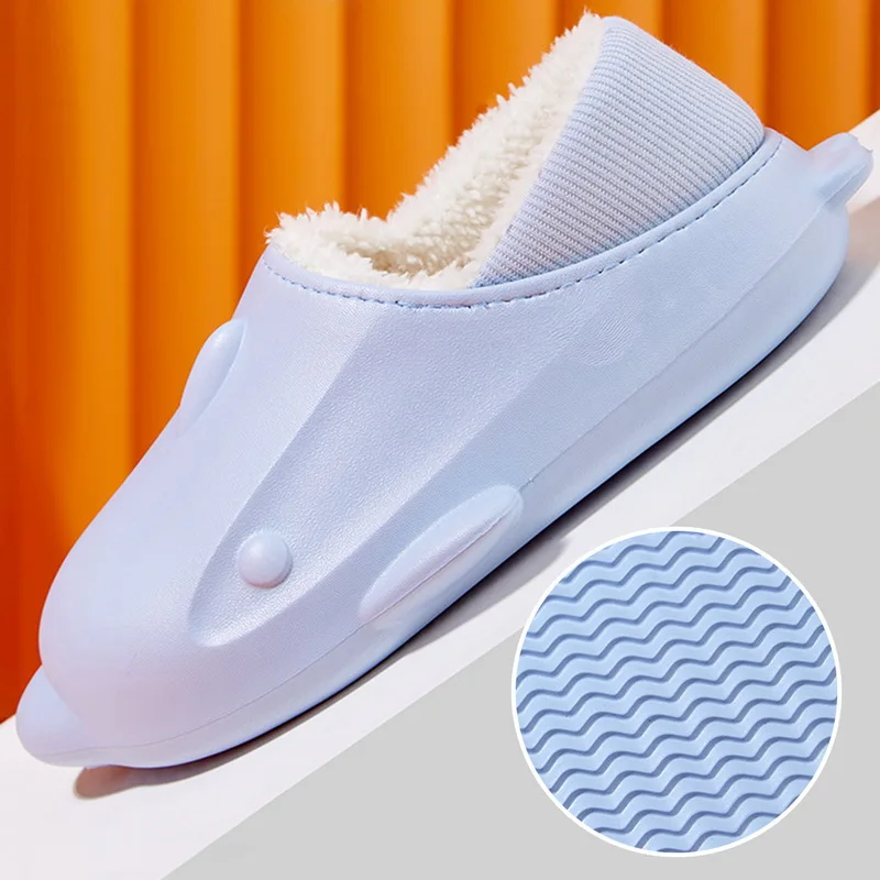 Winter Women Fur Shark Slippers Waterproof Warm Plush Household Slides Indoor Ho